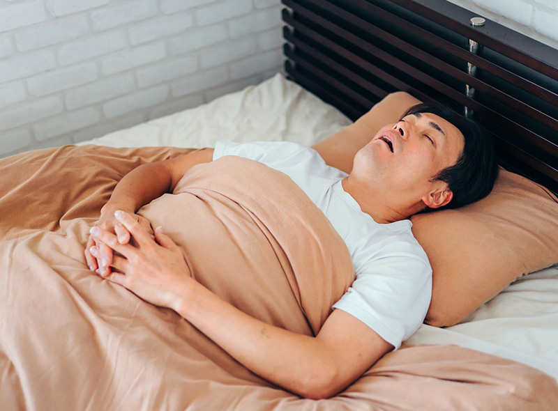 睡眠時無呼吸症候群とは、就寝中に呼吸が止まる病気です。発症すると夜間の睡眠が妨げられるため、日中に集中力を欠いたり、眠気に襲われたりする可能性が高くなります。