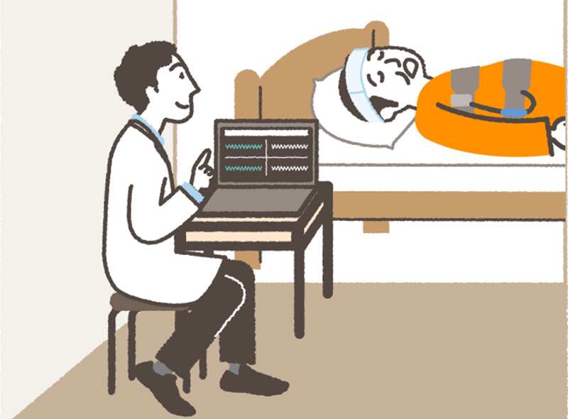 睡眠の質や呼吸、脳波、心拍、筋電図などを総合的に評価する本格的な検査です。